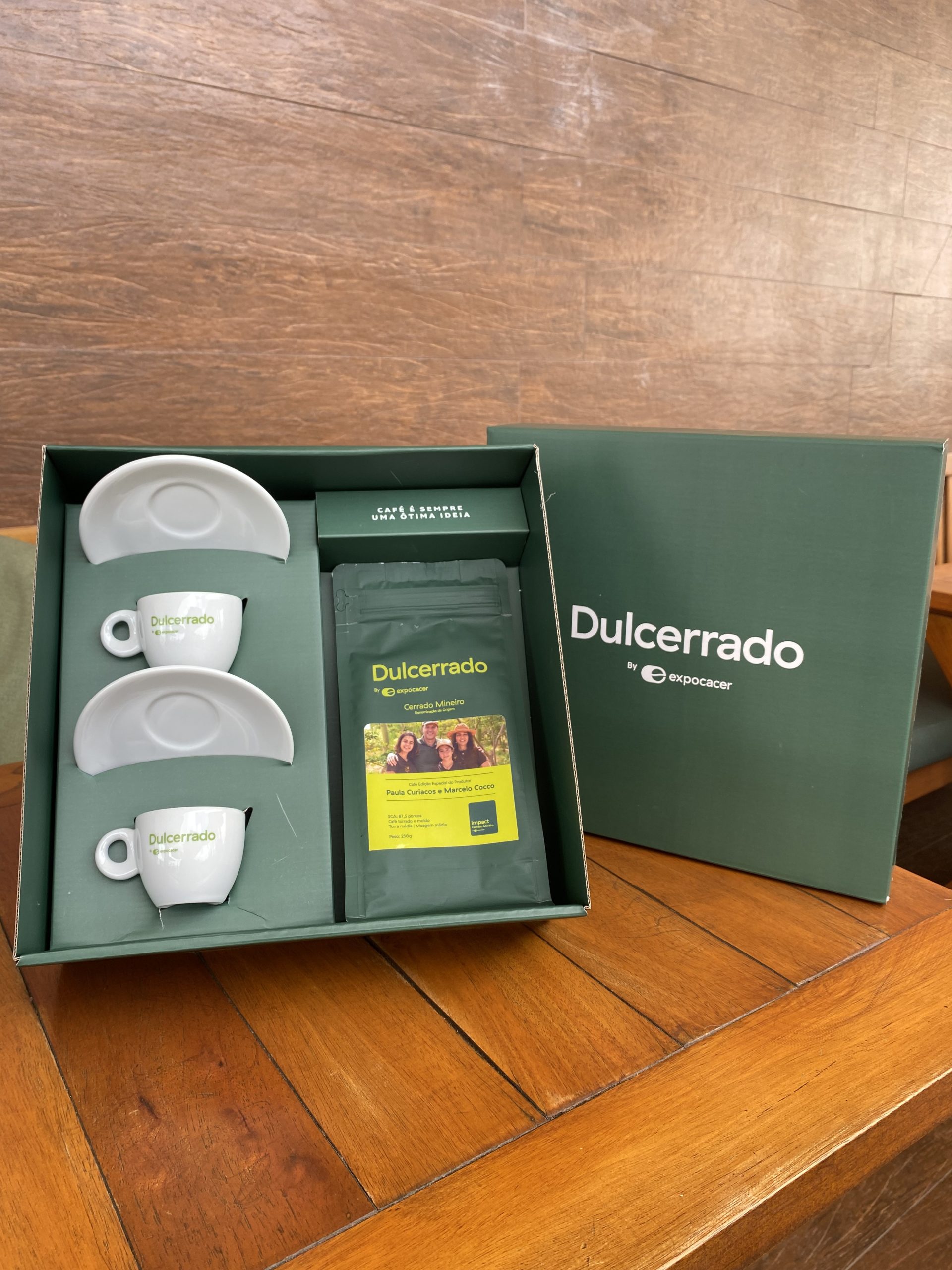Além do café, o kit inclui um conjunto exclusivo de xícaras e pires Dulcerrado, ideal para transformar cada momento em uma pausa especial.
